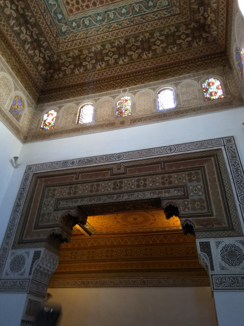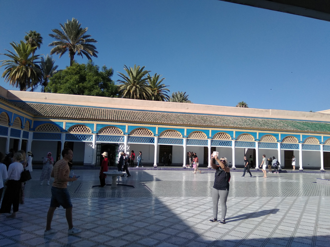 Далее к осмотру предлагается находящийся неподалёку в медине и содержащий в себе 150 комнат, расположенных на первом этаже, Дворец Бахия, на строительство которого ушло 7 лет. Он был построен известным визирём султана для одной из своих любимых жён и гарема из 24 наложниц. После в разное время во Дворце проживали зажиточные горожане Марокко XIX века. Дворец Бахия впечатляет своими мозаичными расписными стенами с причудливым орнаментом, мраморными фонтанами, массивными кедровыми дверями. Но это всё внутри – внешне Дворец очень скромен и не привлекает к себе особого внимания. Этот контраст отражает арабские традиции не выставлять своё богатство напоказ, а тщательно прятать его. В настоящее время здесь можно посетить художественную выставку или послушать концерт восточной музыки.