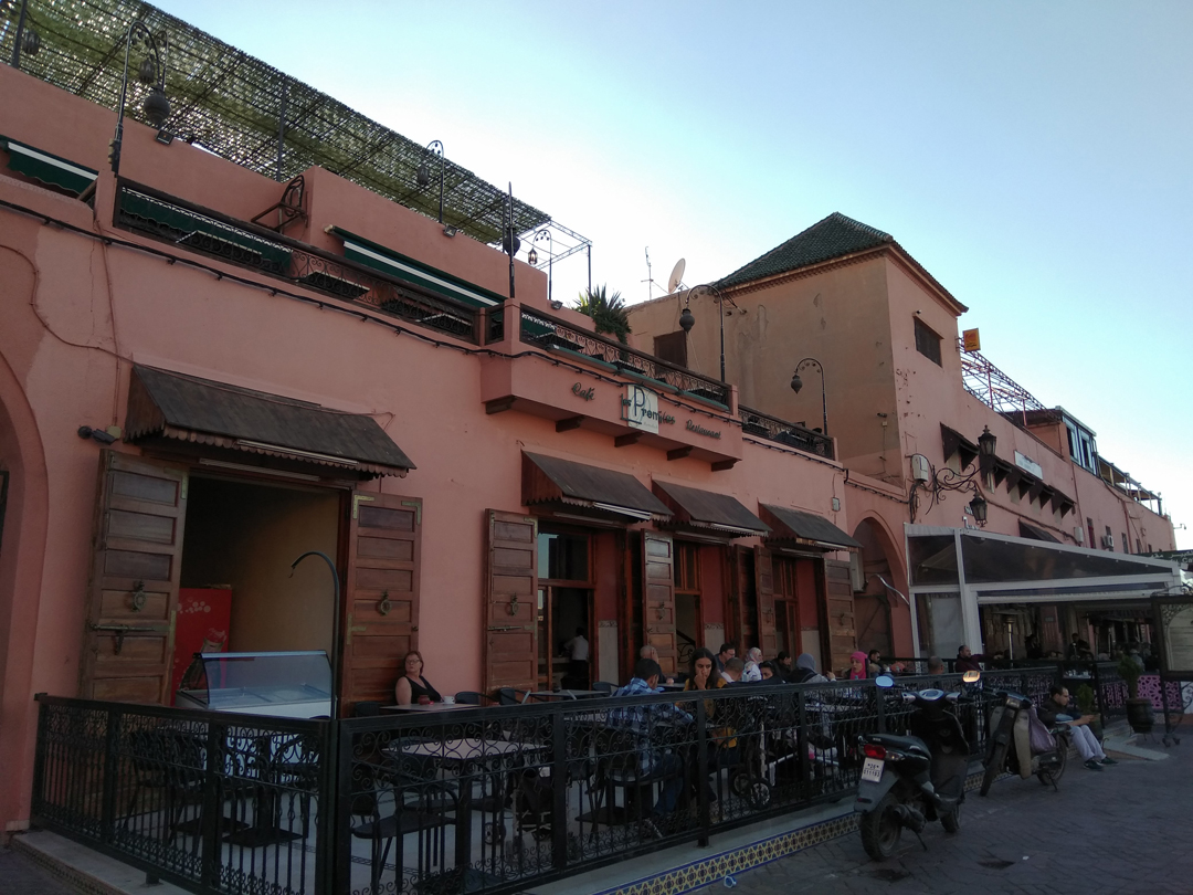 Наиболее известное место в городе – построенная ещё в Х веке, самая большая в Африке яркая и весёлая площадь Джема-эль-Фна. Днём здесь может быть относительно спокойно: лавочки торгуют сувенирами, туда-сюда снуют водоносы (местные разносчики воды, являющиеся национальной особенностью Марокко – в их честь даже установлен памятник). Однако к вечеру площадь становится совершенно другой – мерцают цветастые огни, вокруг активно идёт шкварка-варка разнообразной пищи (улитки, рыбные деликатесы, фруктовые фреши, сладости), разыгрывают свои представления артисты, проводятся бои скорпионов, бродят попрошайки, устремляются к вам навстречу красильщицы хной и укротители кобр. Вокруг шумно, пёстро и многолюдно, музыка доносится с разных сторон.