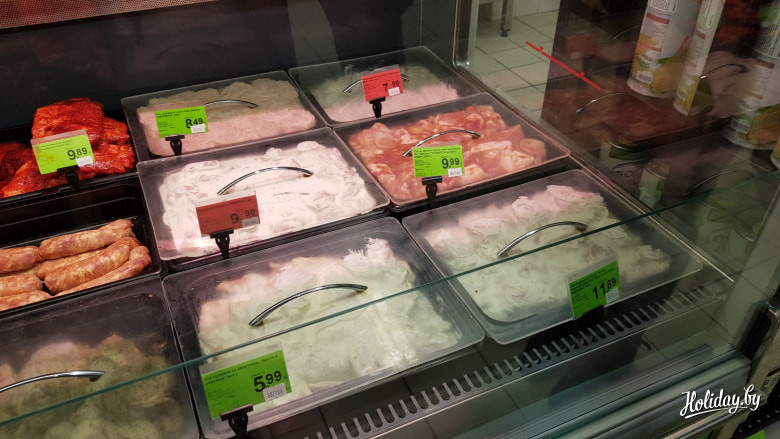 Магазин «Соседи»: шашлык из свинины — 11.49 BYN. На прилавке этого магазина также был найден самый дешёвый шашлык под названием «Праздничный» за 9.69 BYN.