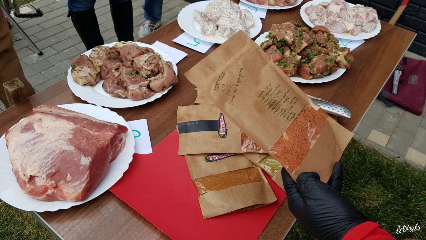 Так как в запасе у нас было больше 6 килограммов продукции (по одному образцу из каждого магазина), было принято решение готовить одновременно на гриле, кирпичном мангале-печке и обычном складном мангале. Для чистоты эксперимента образцы мяса были пронумерованы. Дальше ни повара, ни участники команды не знали, где покупался шашлык.