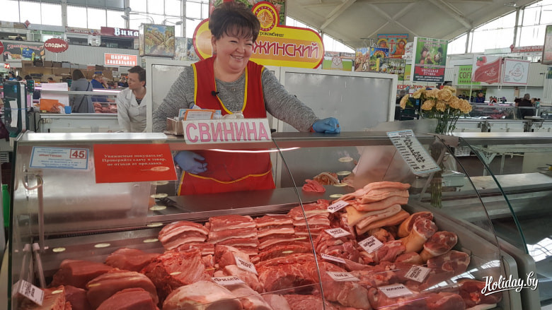 Минский Комаровский рынок: килограмм свинины (шейная часть) без маринада — 12 BYN за килограмм.