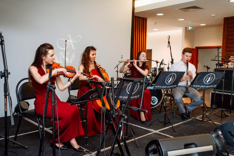 В перерывах между встречами участников радовали музыканты коллектива "Пан Квартет".