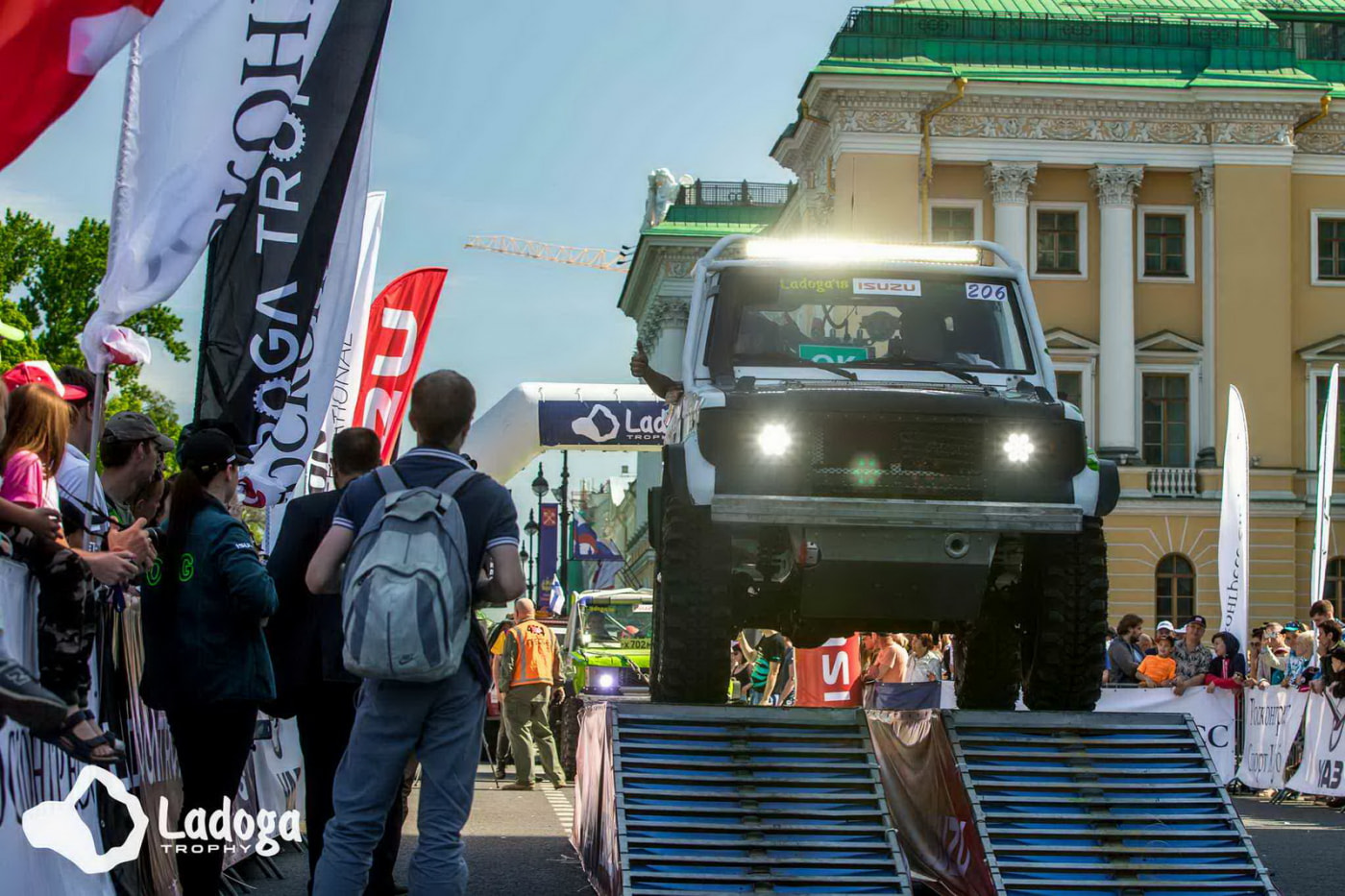 8 июня в 12:00 в 23-ой раз состоится традиционная церемония торжественного старта Ladoga Trophy на Исаакиевской площади. После чего экипажи участников, технические команды и любителей бездорожья отправятся в 8-дневный марафон по трассам Ленинградской области и республики Карелия.