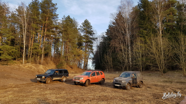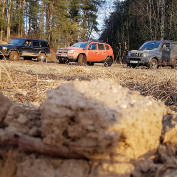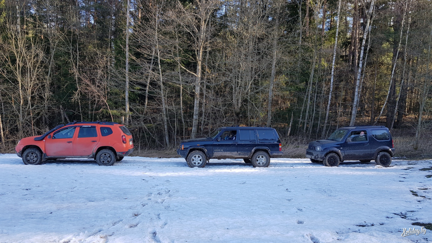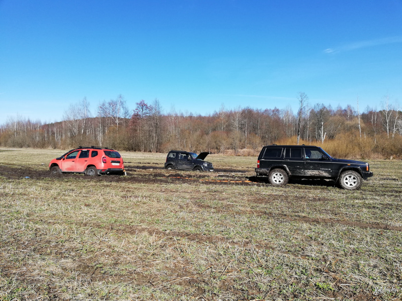 В последние дни весны выехал за город в компании двух рамных внедрожников - Jeep Cherokee на внедорожной резине и с большим сердцем-мотором, а также японским якудза Suzuki Jimny с настоящим камикадзе за рулём.