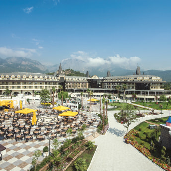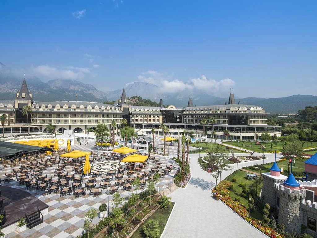 Если Вы любите не только пляжи, но и завораживающую природу, то определенно стоит обратить внимание на этот отель. Он разместился у подножья Таврских гор, посреди прекрасного ландшафта, невдалеке от пляжа, отмеченного Голубым флагом. Поблизости сосредоточены магазины и развлекательная инфраструктура. Amara Prestige как нельзя лучше подойдет для семейного отдыха в Турции с детьми, а также для молодых пар. Одной из изюминок отеля является его оригинальная изысканная архитектура: внешне здание напоминает замок с башнями. Здесь туристов ожидает масса развлечений и вариантов активного отдыха: от живой фортепьянной музыки и ночного клуба до аквапарка и тенниса.