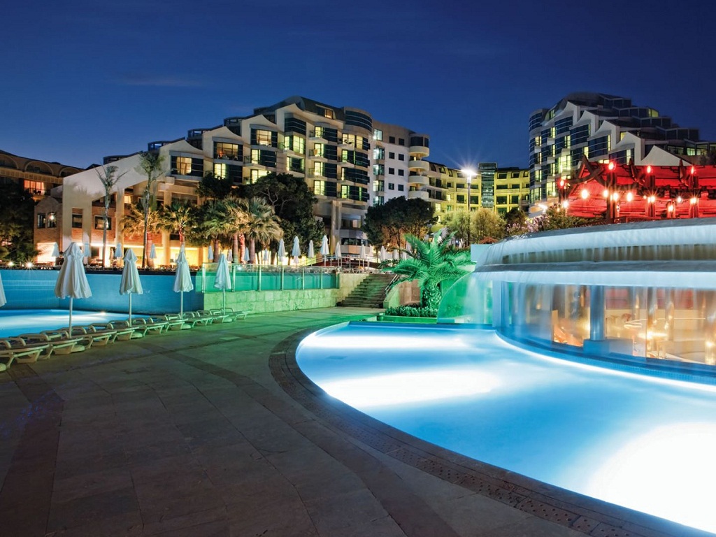 Отдых в Белеке отлично совместим с таким видом спорта, как гольф. Не является исключением и Regnum Carya Golf & Spa, один из самых статусных вип-отелей курорта. На утопающей в зелени сосен территории расположились не только поля для гольфа, но и аквапарк, бассейны, роскошные виллы с просторными светлыми номерами. Отель для взыскательных туристов подойдет как для семейного отдыха с детьми, так и для проведения мероприятий: три года назад здесь даже проводился Саммит Большой двадцатки. Стоит ли говорить, что в блестящем уровне сервиса не может быть сомнений?