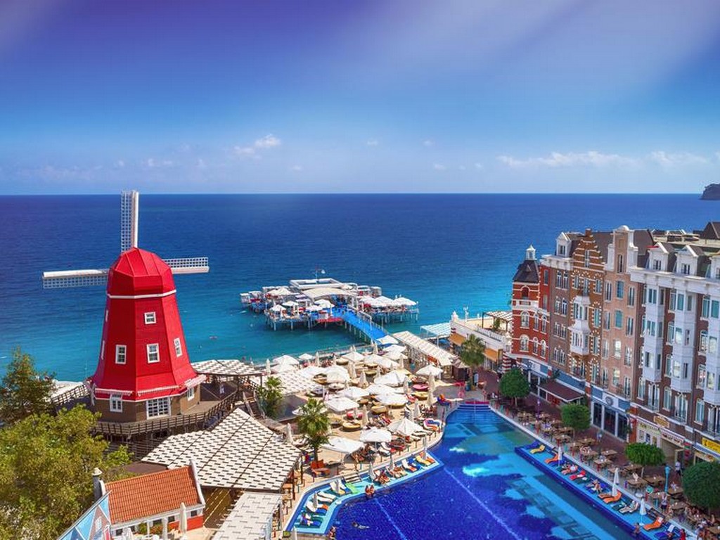 Если Вам очень хотелось поехать в тур в Амстердам, но вместо этого выбор остановился на Турции, то это — Ваш отель! Почему? Да потому что его архитектура и территория стилизованы под набережную столицы Нидерландов. Отлично подходящий для молодежного отдыха, Orange County Resort находится невдалеке от центра Кемера, где сосредоточены ночные развлечения курорта. Голландская стилистика передалась от архитектуры и кухне: здесь можно отведать амстердамские деликатесы наряду с османскими блюдами. Пляж, соседствующий с каналом-бассейном, оборудован пристанью. Всю эту территорию занимают анимационные развлечения, которые проводятся в дневное и вечернее время.