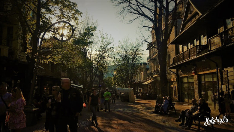 По прибытию на знаменитый курорт – расселение по номерам, после чего можно провести вечер так, как пожелается, без привязки к группе. Мы решили познакомиться с Закопане и отправились в центр на автобусе. Из-за облачности окружающий пейзаж не порадовал горными вершинами, зато порадовала польская корчма вкусной местной кухней. Плотно поужинать (как и пообедать) в центре города можно примерно за 20-30 злотых на человека (5-7 евро). А перекусить фастфудом – и того дешевле.