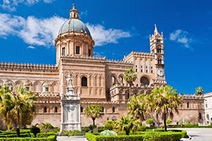 За историей во Дворец Норманнов в Палермо. Норманнский дворец – бывшая резиденция сицилийских королей. Внешний облик – учебник истории: один фасад сохранил свой первоначальный арабо-норманнский вид, другой – типичный ренессанс. В Палатинской капелле дворца византийские росписи и резной потолок образца 12 века, золотая мозаика на тему охоты - нетипичную для норманнской Сицилии.