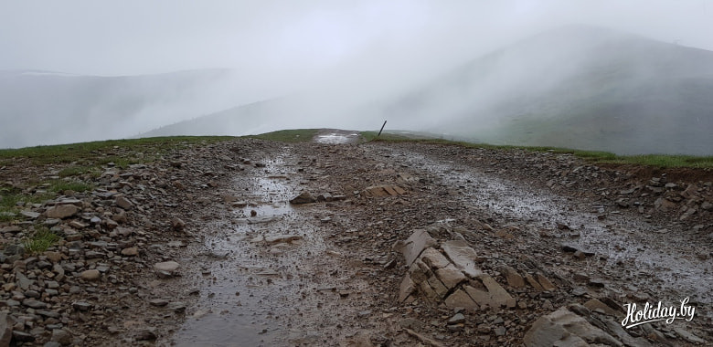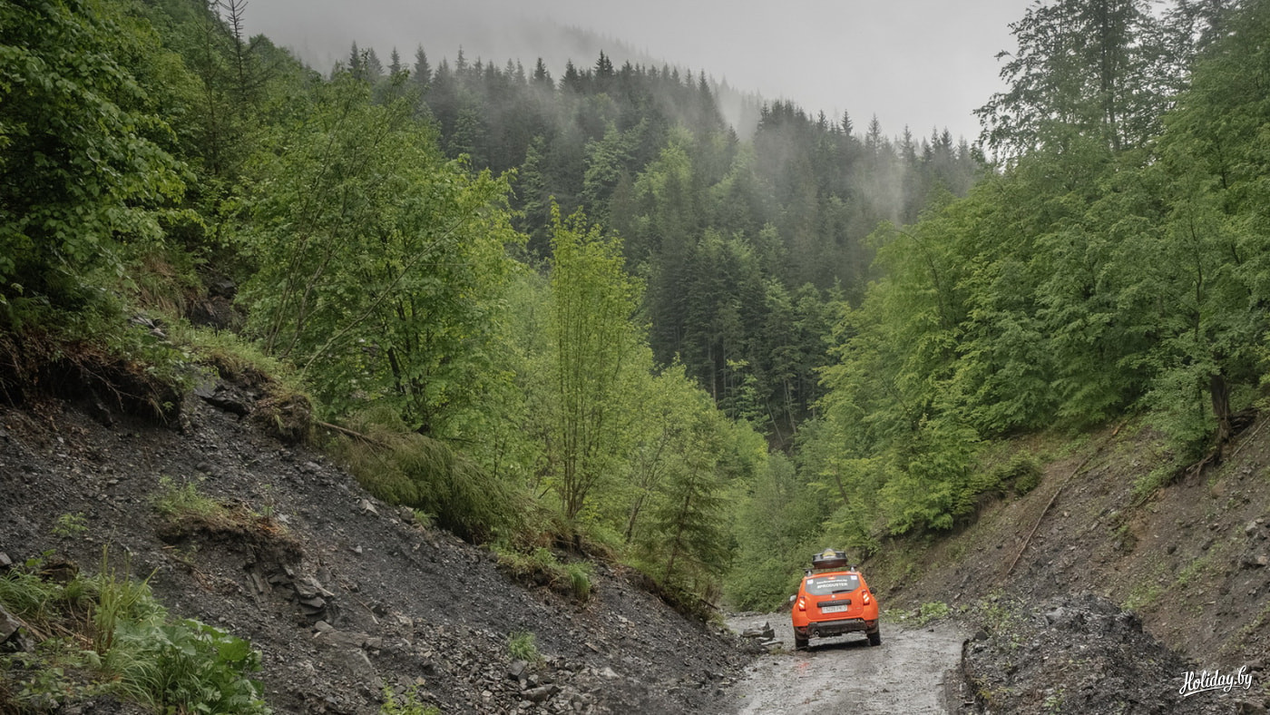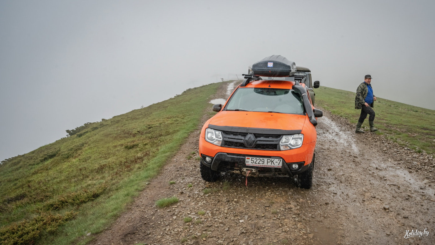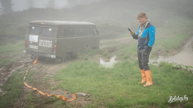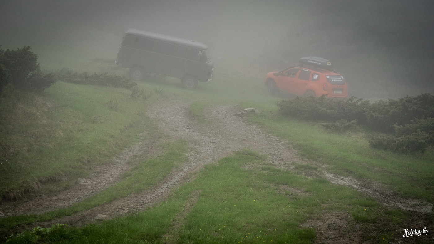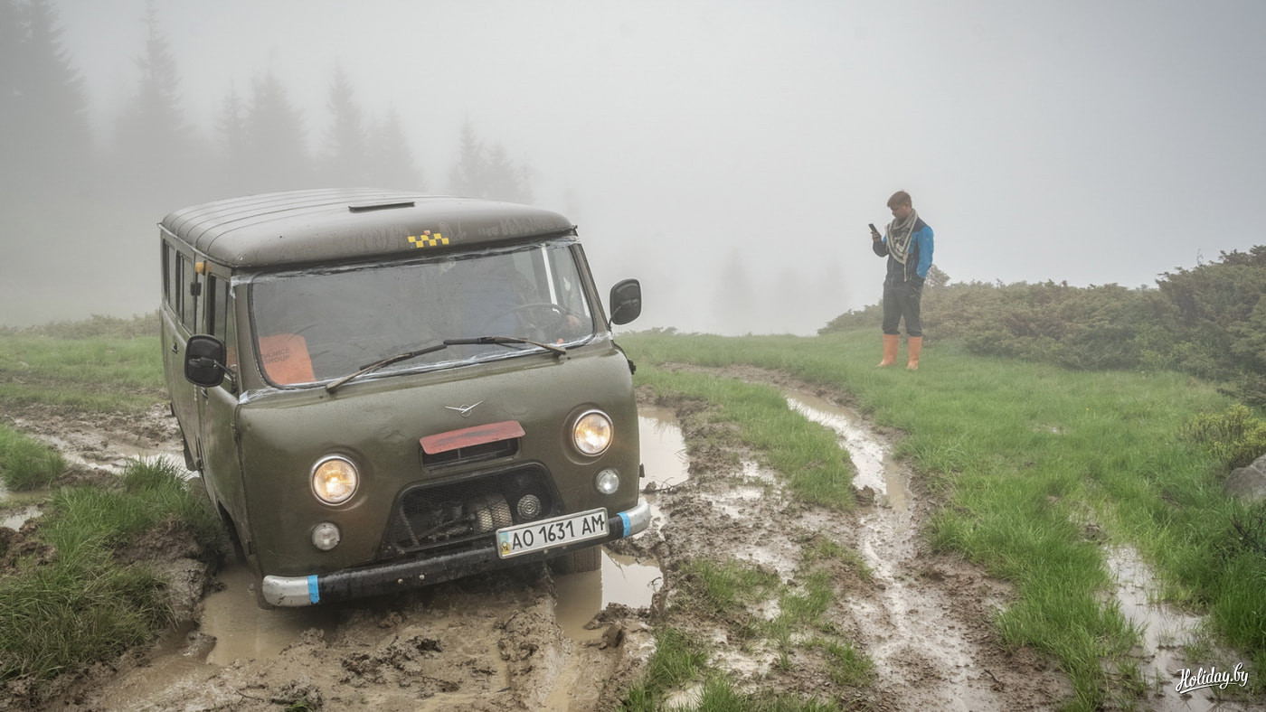 В то утро в Буковеле лил сильный дождь. Мы с вечера были вынуждены сменить сопровождающего. У тюнингованной машины нет богатого опыта подъёма по высокогорному бездорожью. Другой бы сказал, что всё плохо. Я и сам на минутку так подумал. Но у любителей бездорожья есть принцип: чем хуже – тем лучше. И ещё раз срабатывало убеждение, что в горах всё переменчиво. Вот выедем мы на вершину, а там не шквалистый ветер и снего-дождь, а солнышко и пейзажи-пейзажи до горизонта.