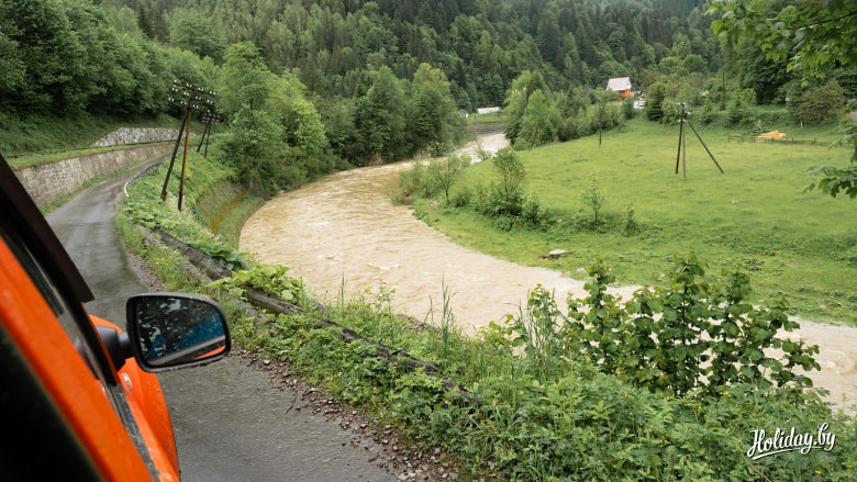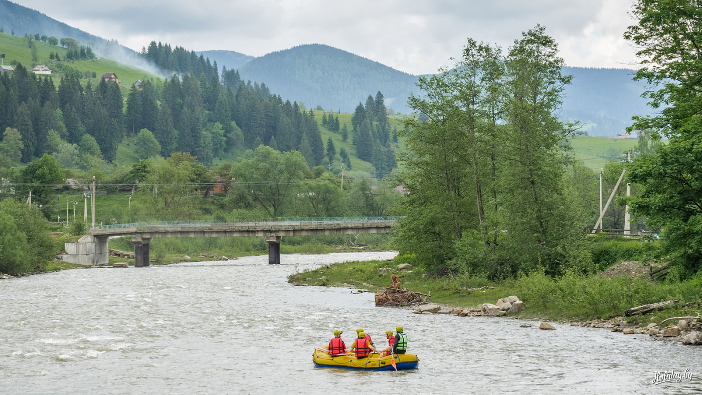 База для рафтинга «Черемош» находится за горным перевалом, до которого ведёт сперва нормальная, а потом украинская дорога. Какое-то время ты находишься в орбите цивилизации Буковеля. Через полчаса езды на машине в боковых окнах ощущается настоящая местная жизнь.