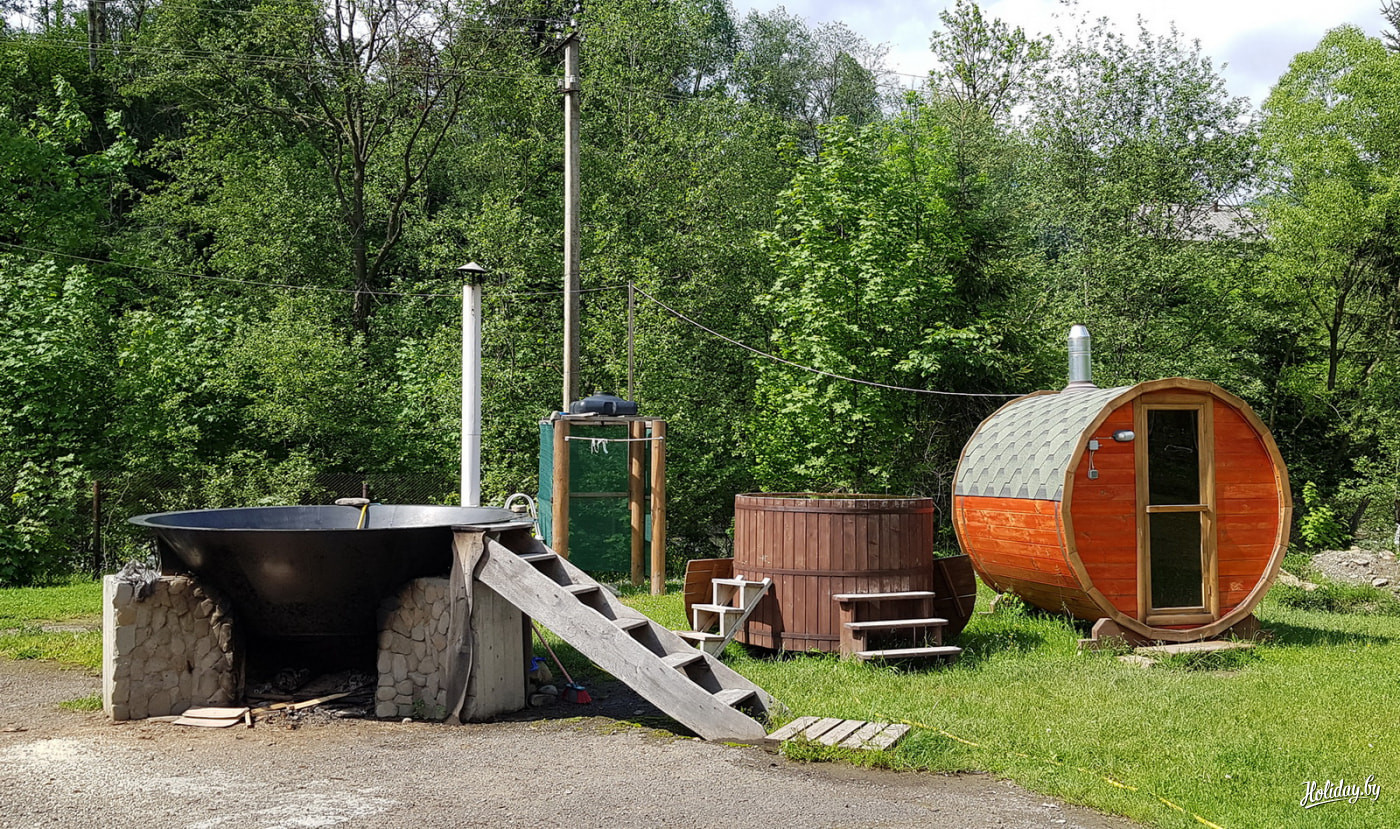 Тем временем я прошёл оба испытания успешно – мне положено в чан. Легендарная карпатская SPA-процедура. Огромный чан стоит над открытым огнём. В саму чашу набирается местная, богатая на микроэлементы, вода и добавляются травы и хвоя. На дне чаши находятся камни, которые нагреваются от костра под ней.