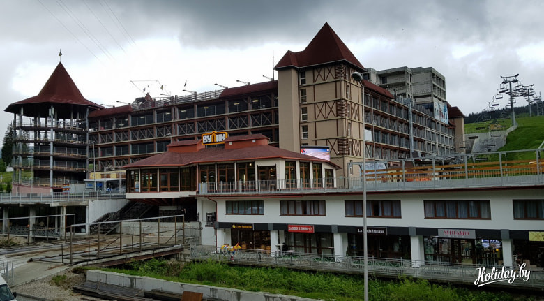 Не могу сказать, что Буковель – это какой-то рай на земле. Место чудно тем, что ещё десять лет назад его не было на карте Украины. Искусственно построенный курорт своей целью ставил ублажить любителей горных лыж. Было найдено место, где в этом регионе самая низкая температура зимой. Дальше включились умы, чтобы разработать инфраструктуру и отели так, чтобы лыжник не чувствовал трудностей с перемещением по курорту. Это зимой нужно подбирать гостиницу в Буковеле так, чтобы рядом был подъёмник и не приходилось полдня добираться до вожделенной горы. Летом можно селиться в любой понравившийся отель, так как из подъёмников работает только обзорный, поднимающий желающих на ближайшую вершину за сотней лайков в инстаграме.