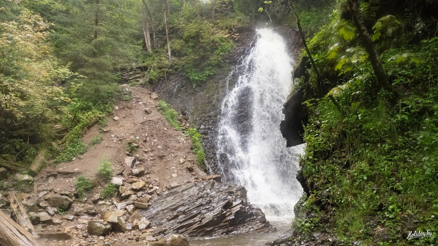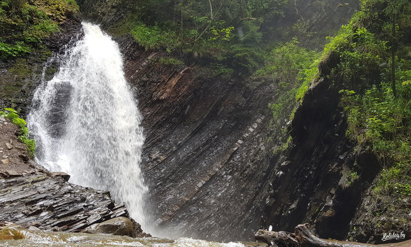 Водопад Гук молодой. Этот однокаскадный поток воды появился тут после Второй мировой войны в результате наводнения. А название говорит само за себя. В белорусском языке тоже есть слово «гук» - звук. Высота водопада примерно 15-18 метров. При этом надо понимать, что сам водопад, как и местность, расположены на высоте 900 метров над уровнем моря.