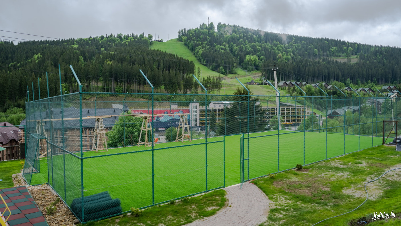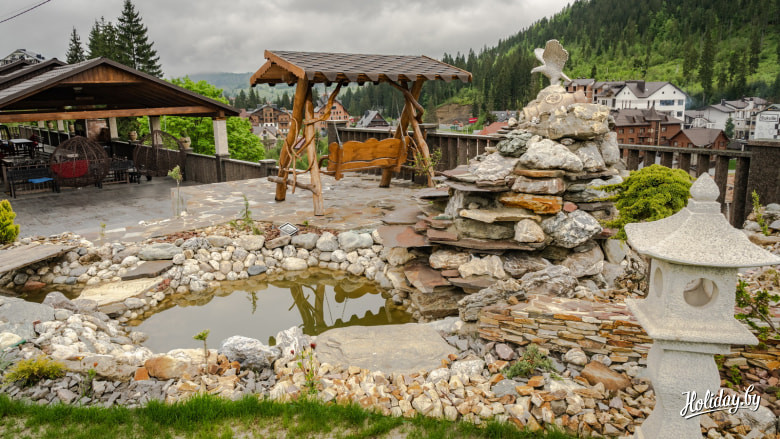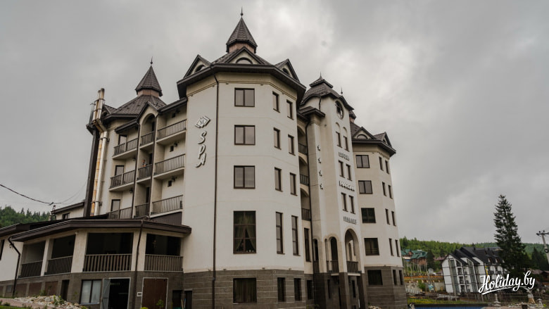 Наш партнёр, туроператор «Колесо путешествий», решил показать один из отелей, где любят селиться белорусские горнолыжники – Mardan Hotel Bukovel 4* находится в самом начале курорта, рядом с подъёмниками. Зимой, уверен, это многие ценят. Как и то, что в стоимость проживания входит SPA, а также пользование всей огромной территорией. На ней летом расположились игровые площадки, зона барбекю.