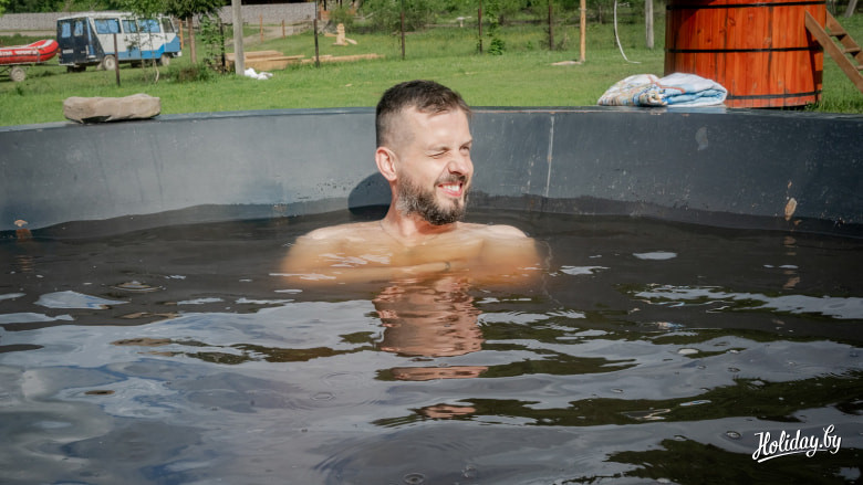 Только обязательно проверяйте температуру воды в чане прежде, чем сигануть в него! Градусник в «кастрюле» был размечен до +50 градусов, и стрелка ещё очень долго находилась далеко за этой отметкой, пока я щедро не разбавил кипяток холодной водой.