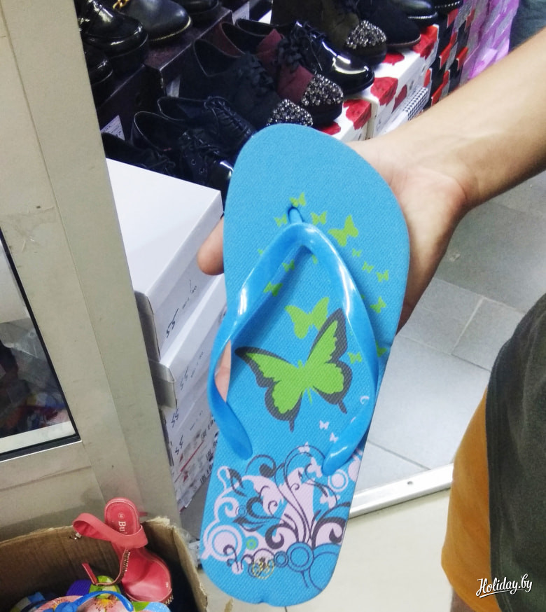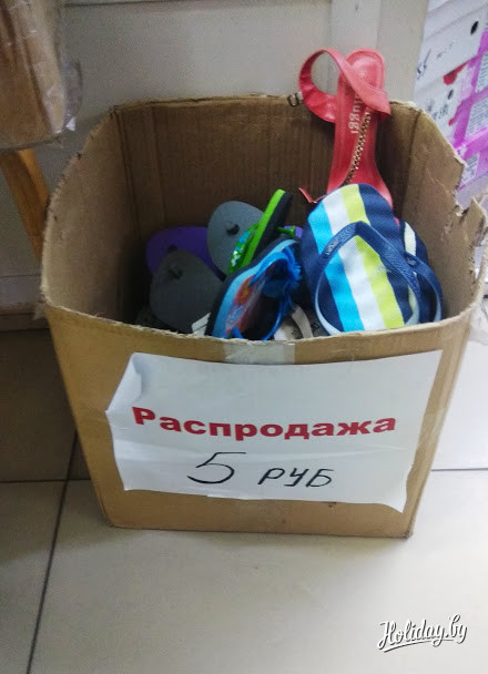 Небывалая удача: вьетнамки всего за 5 (прописью – «пять») белорусских рублей. Правда, в коробке всё лежит без пары. Может для того, чтобы несознательные граждане не украли приглянувшуюся. А, может, и потому, что за пять рублей нужно компоновать максимально схожие между собой шлепки и носить, что дают.