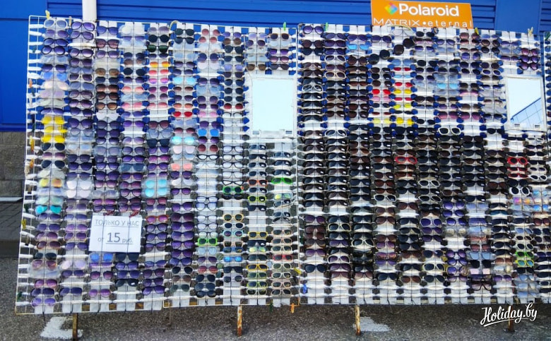 Тут же виднеются и очки за 10-15 рублей. Это почти «стандарт» на данный вид аксессуара. Конечно, бывают и за 30-35 BYN, но зачем платить больше за один и тот же «китай»? Моделей, кстати, очень много. Защита от ультрафиолета, конечно, под вопросом. Но выбрать что-то свое в плане стиля и под форму лица наверняка удастся.