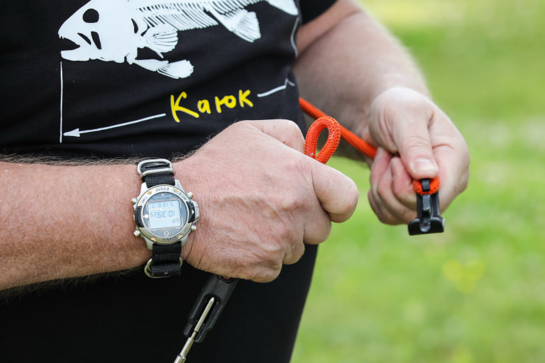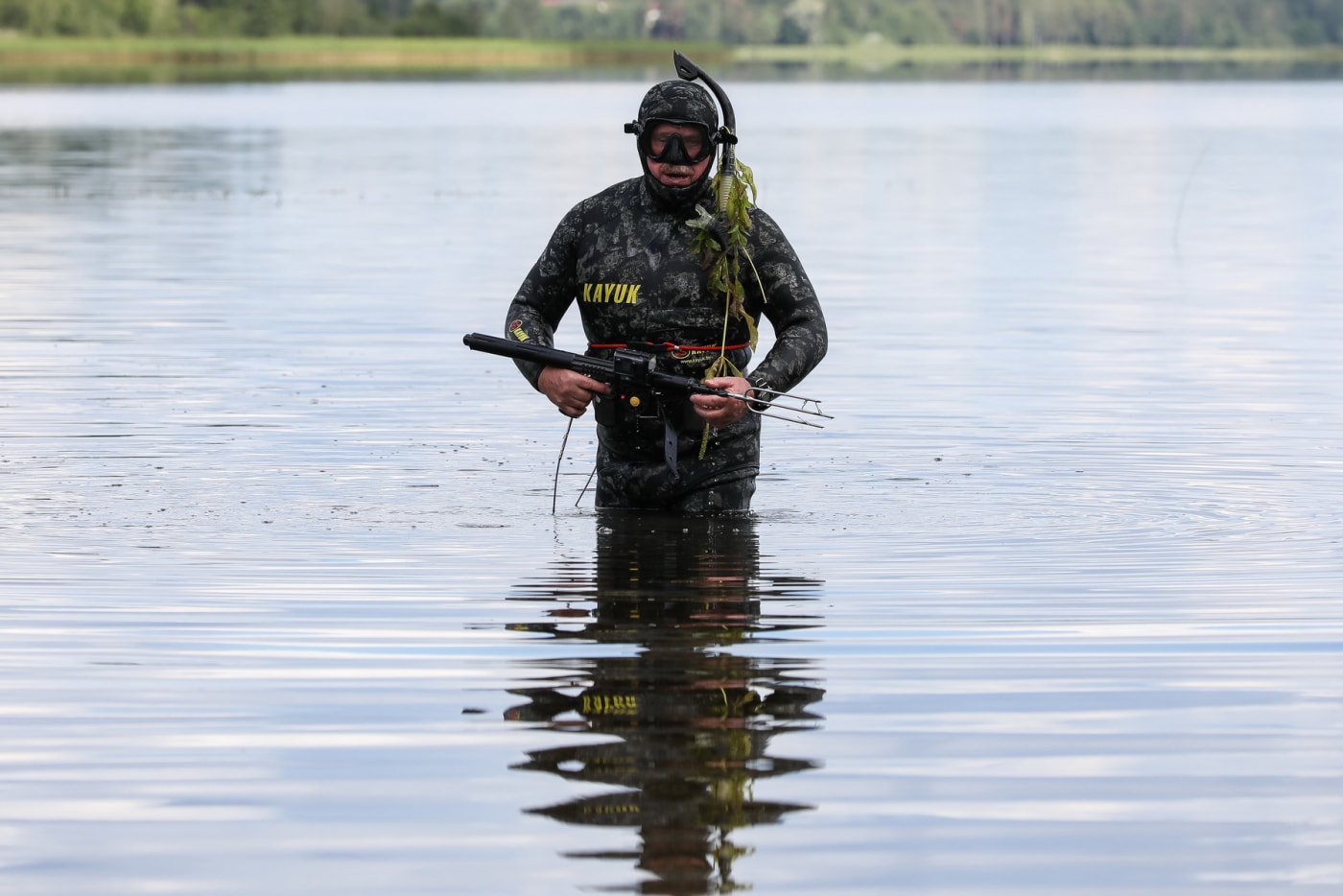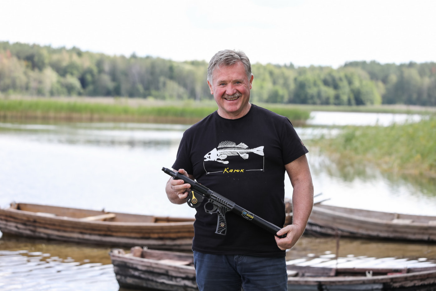Разрешение на погружение за подводной дичью со специальным ружьём стоит 25 белорусских рублей в сутки. В довесок оказалось, что один из известных конструкторов ружей для подводной охоты – Юрий Козловцев – в эти дни находился на Браславах.