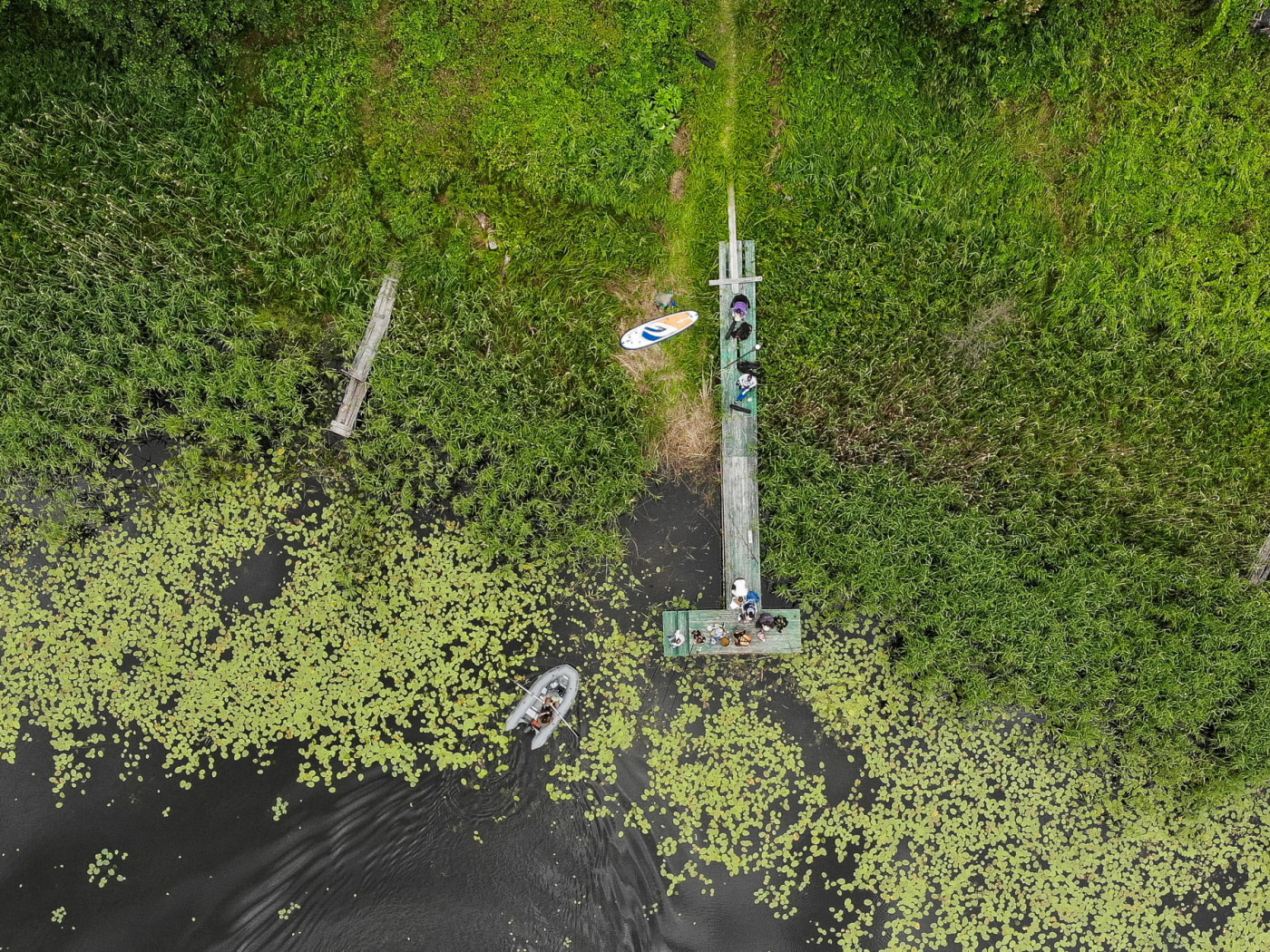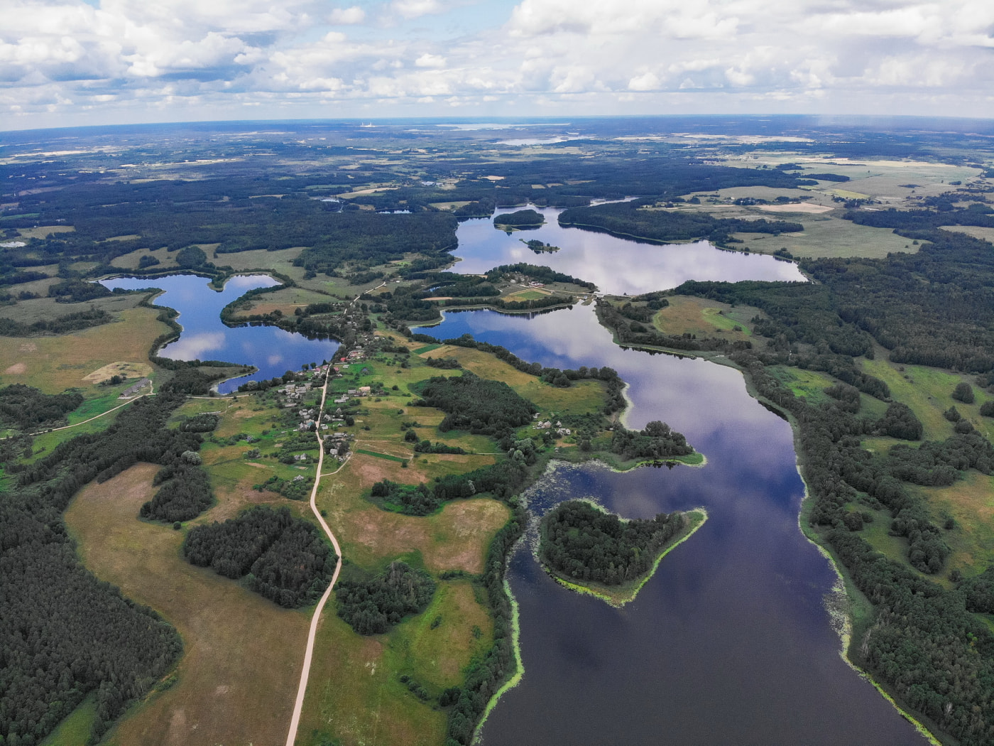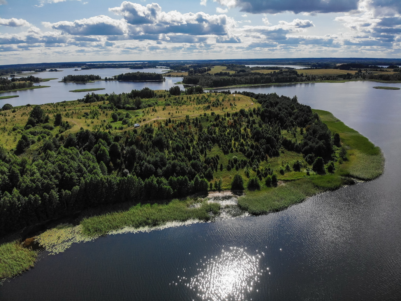 С окрестных холмов открывается панорамный вид на озёра и на бывшее поселение настоящих скандинавских викингов.