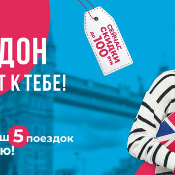 До конца августа вас ждут максимальные скидки до 100 рублей и возможность выиграть путешествие в Великобританию!