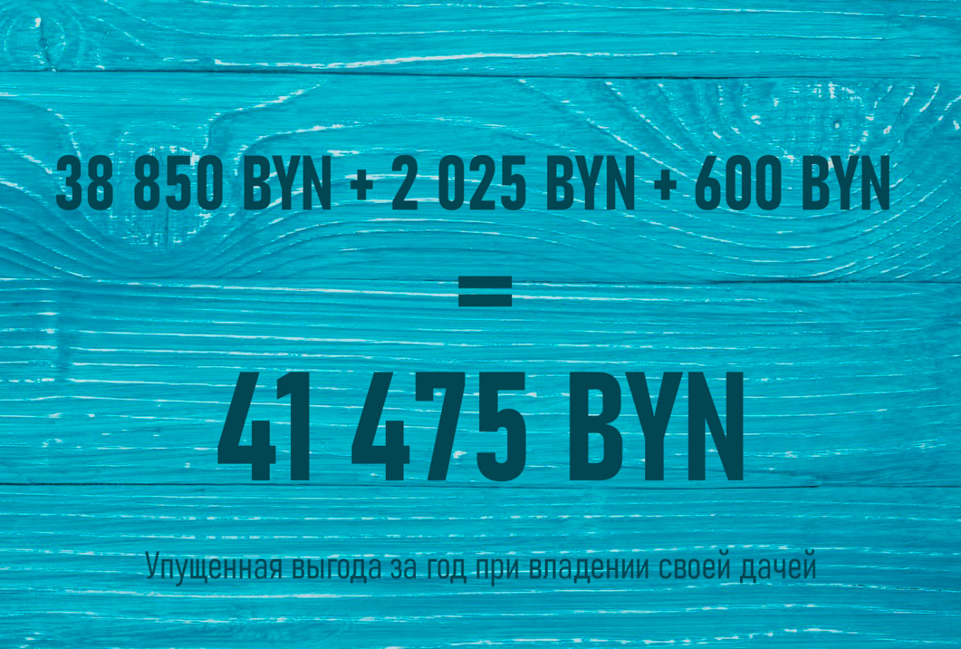 324 часа. Помним, что за каждый час при желании можно заработать 6 рублей 25 копеек. Итого: 2 025 BYN. Таким образом, к тем 38 850 BYN у нас добавляются ещё 2 025. Дальше идут всякие «мелочи». Каждый раз когда вы едете на дачу, вам необходимо что-то купить, а также заправить газовый баллон, заплатить за электричество, купить бензин в косу. Все эти расходы мы очень приблизительно оценим в 600 рублей в год, хотя это откровенно заниженная цифра.