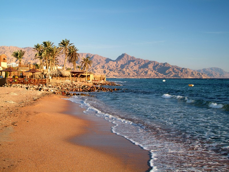 Расположенный у израильской границы, курорт знаменит, в первую очередь, горой Синай и Цветным каньоном. Паломничество на Синай, где Моисей получил скрижали с заповедями, можно устроить для прощения грехов, а особенно интересно посетить пещеру, в которой пророк общался с богом. Дахаб, будучи не самым популярным туристическим регионом, может похвастаться достаточно скромными ценами. Виндсерфинг, дайвинг процветают здесь по понятным причинам: ветра сопутствуют парусам, а морская фауна потрясает разнообразием и экзотическим колоритом. Одна из достопримечательностей Египта находится на морском дне: это Синяя дыра, представляющая собой огромный колодец, густо покрытый кораллами.