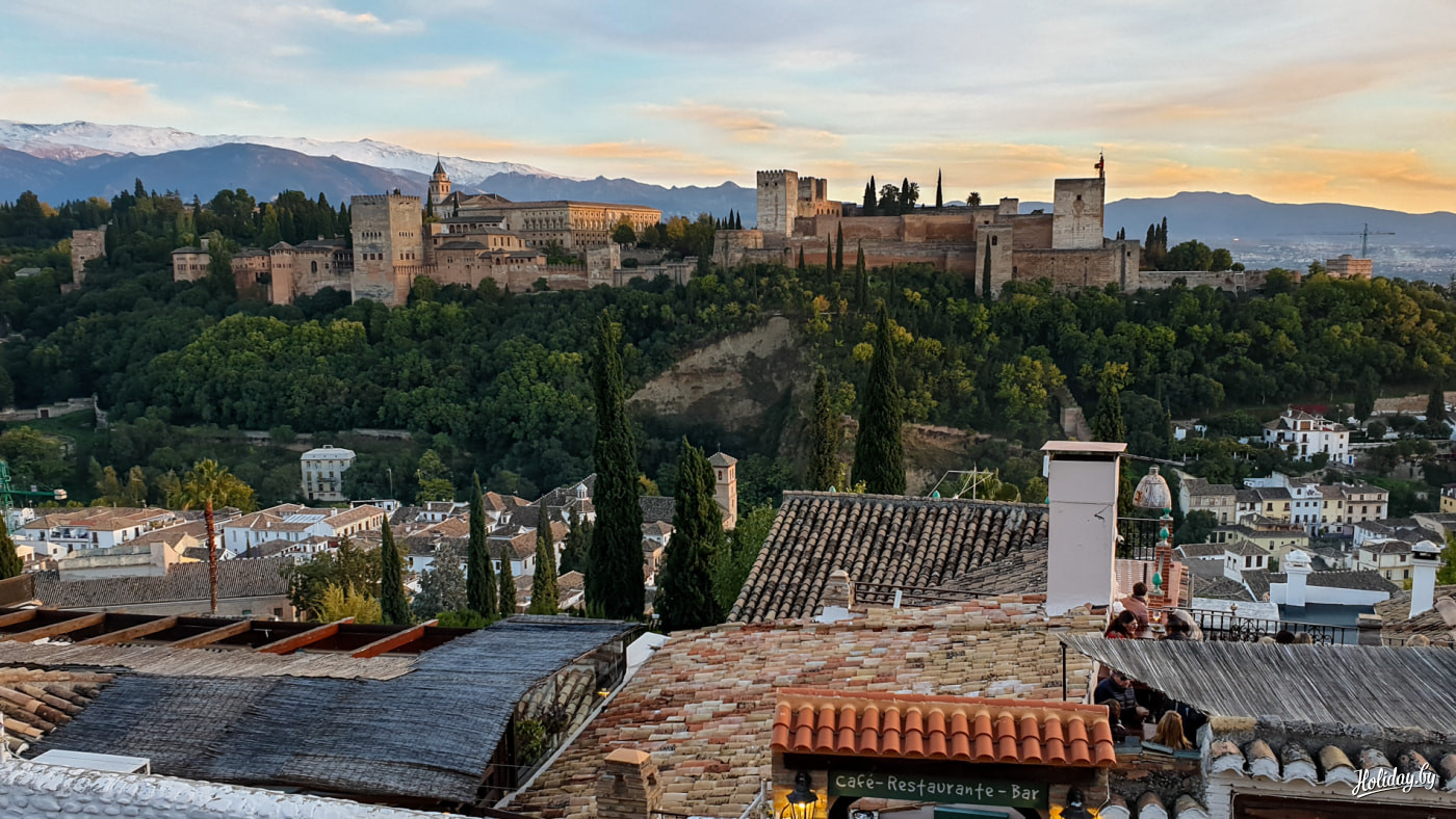 Чтобы лучше рассмотреть Альгамбру потратить немного бензина и нервов при движении на арендованном авто по очень узеньким улочкам соседних с крепостью деревень. В навигаторе можно вбивать любую точку, ехать и искать кафе с обзорной площадкой. Идеальное время – перед закатом.