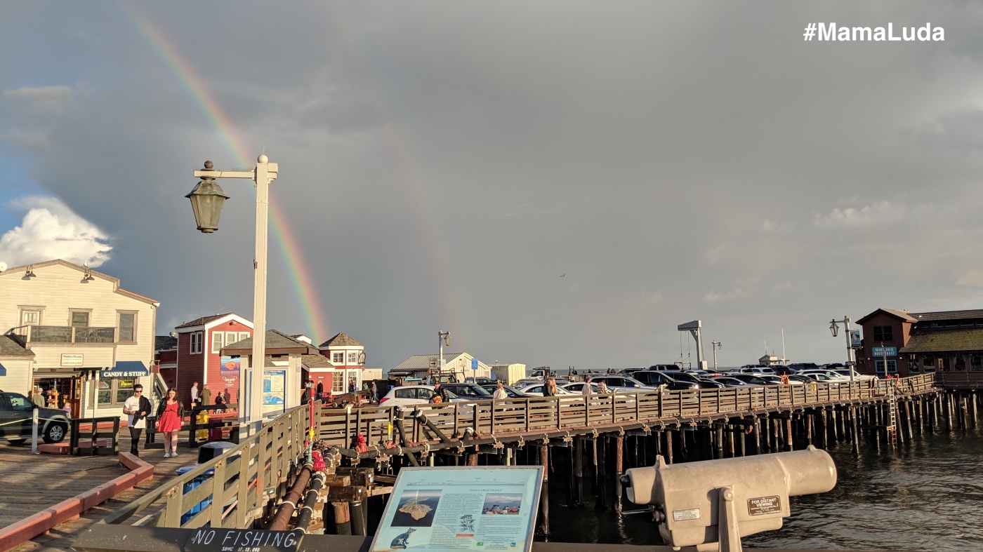 Великолепны пляжи Санта-Барбары с мягким золотистым песком, а вода здесь настолько теплая, что купаться можно даже зимой. С пирса открываются очень красивые виды на океан, горы и сам город. Особенно красив вид на город вечером, с яркой иллюминацией. Мне повезло, и после небольшого дождика на небе появилась огромная двойная радуга! Оказаться среди этого волшебства – это ли не сказка?