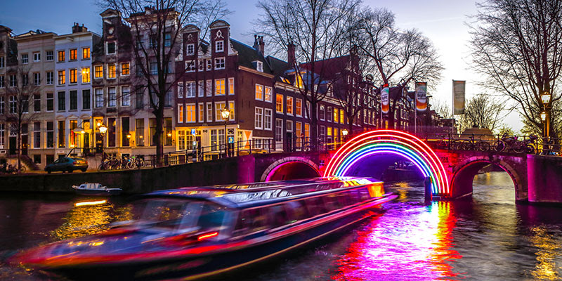 Новый год в Амстердаме - самый развеселый в Европе. Грандиозные фейерверки, ликующие улицы и пляшут даже фонари в квартале тех самых фонарей.