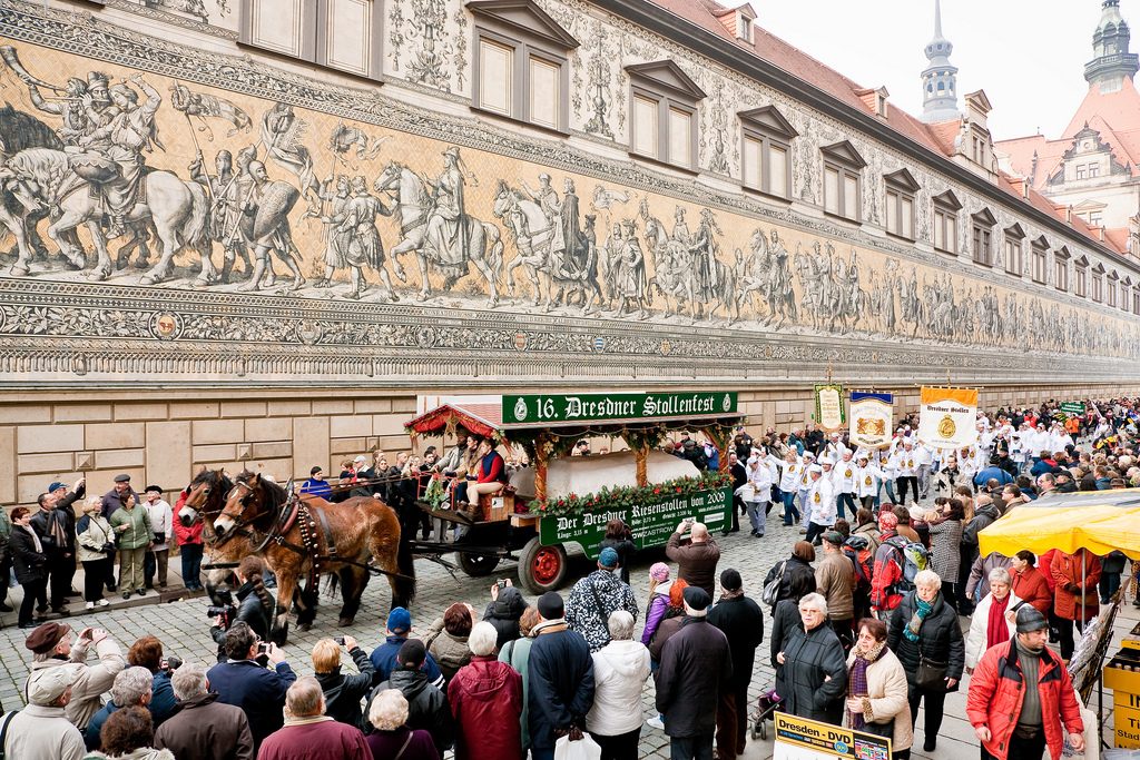 Затем по Дрездену продвигается парад штоллена. Рождественский штоллен, который весит почти две тонны, в специальном фургоне провозят по всему старому городу. Его сопровождают члены ассоциации пекарей и кондитеров города, а также другие участники парада. Маршрут шествия проходит по прекрасным улочкам старого города мимо исторических мест и сооружений, таких, как собор Фрауэнкирхе, Дрезденская оружейная палата, Государственные художественные собрания Дрездена.