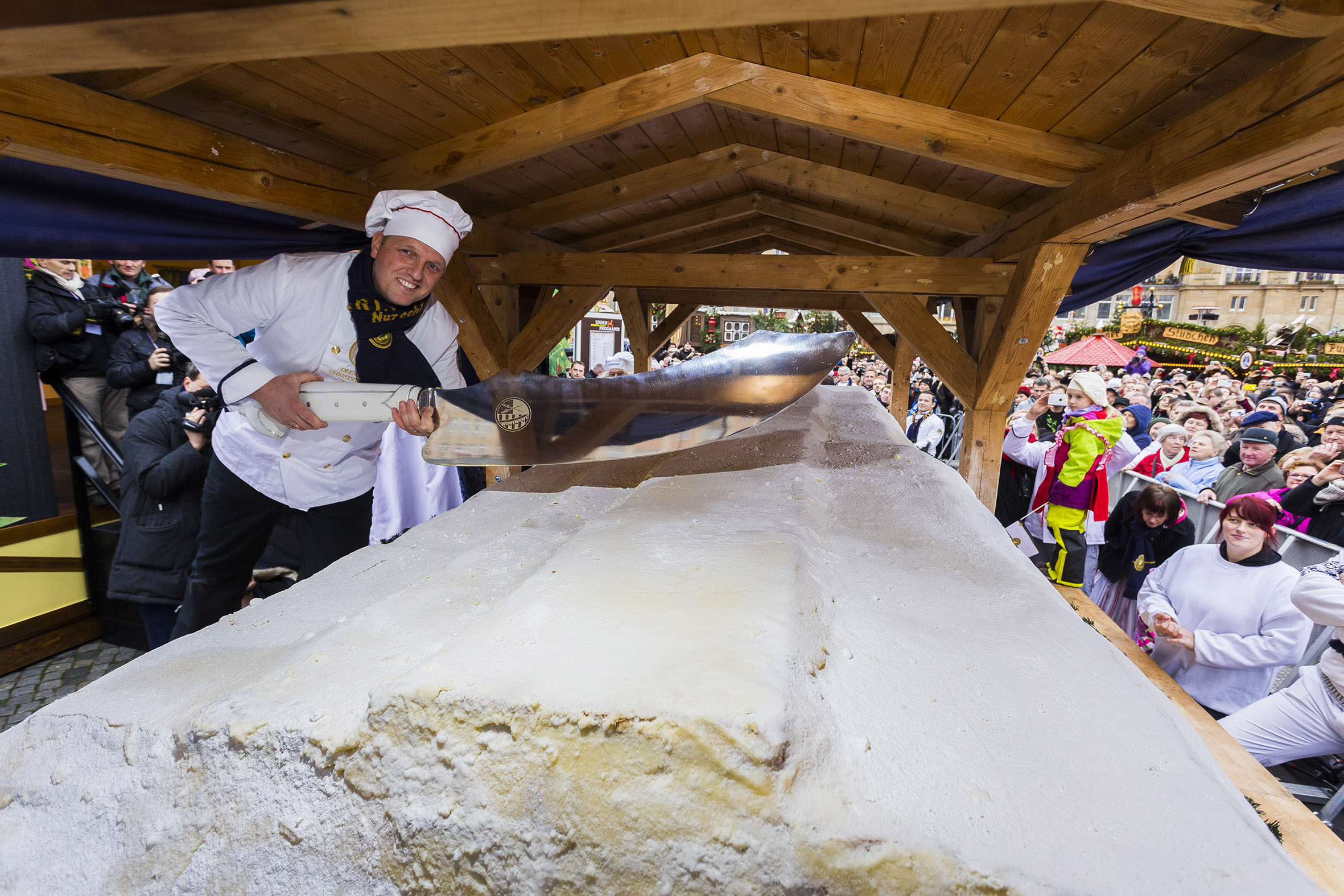12:15 – разрезание гигантского штоллена на площади Альтмаркт.