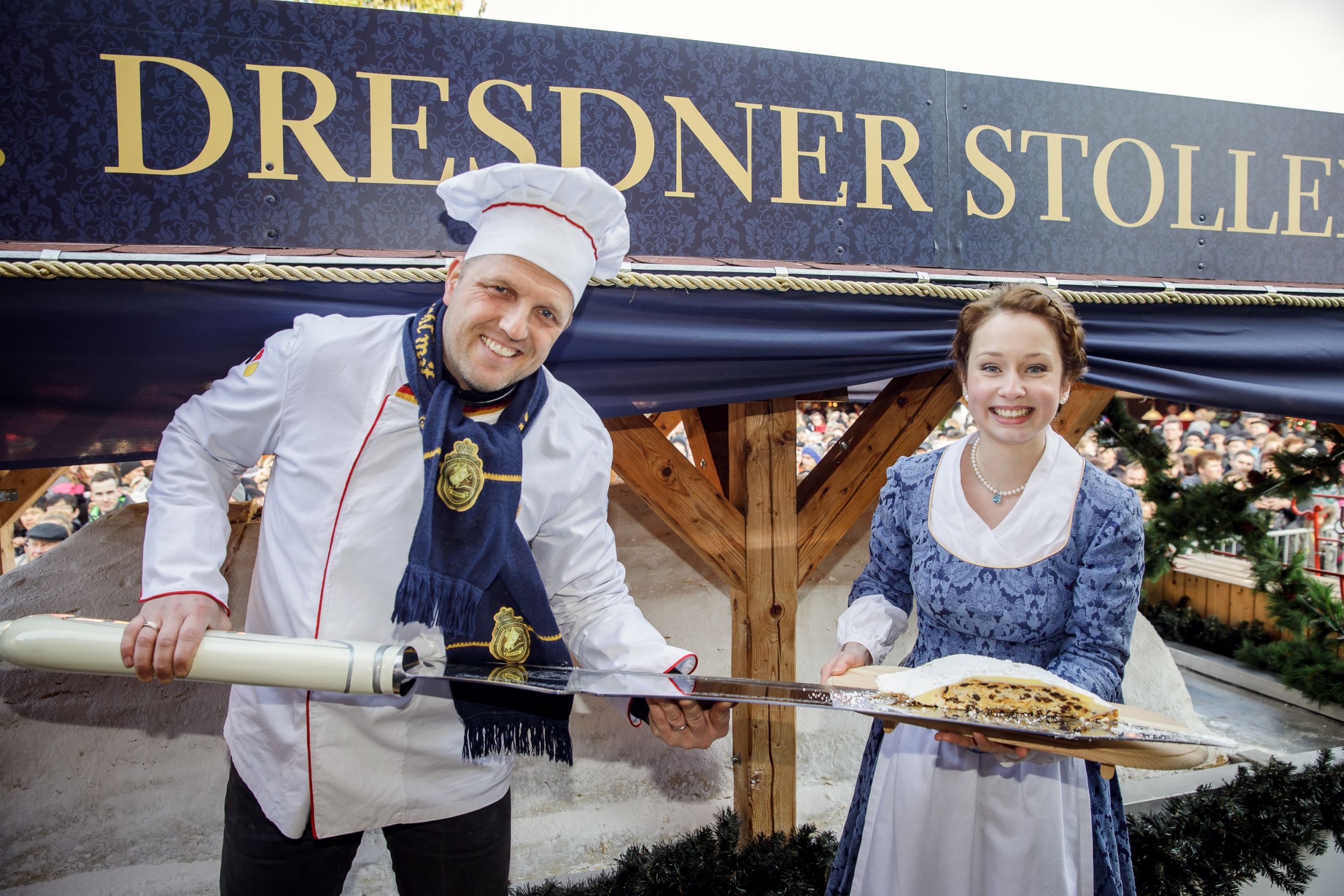 Кульминацией праздника штоллена в Дрездене является разрезание гигантского рождественского кекса церемониальным серебряным ножом (длина ножа больше метра). Его специально изготавливают для подобных мероприятий. Тысячи 500-грамовых кусочков распродаются любителям сладкого. Деньги, вырученные от продажи, передаются в фонд поддержки начинающих кондитеров и на сохранение культурных традиций Дрездена.