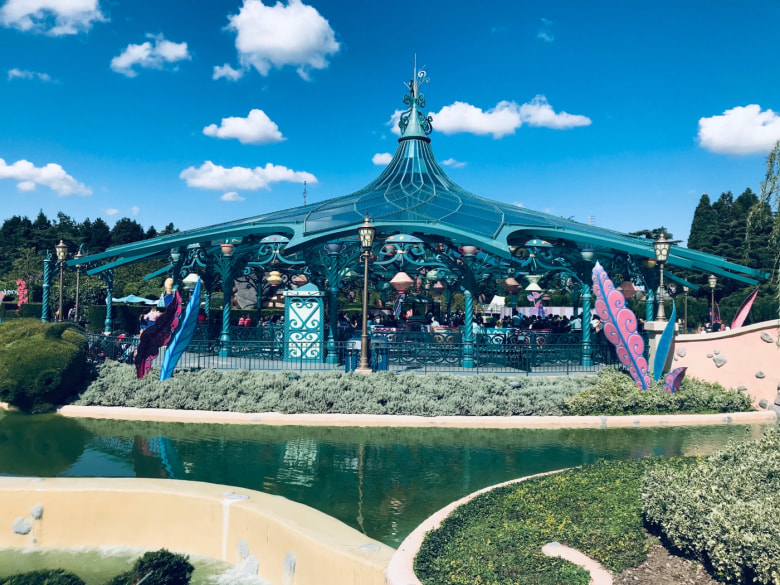 В парк приехал к открытию, но даже в такое время, чтобы попасть на аттракцион, пришлось простоять в очереди 20 минут. Для удобства по бесплатному Wi-Fi в парке можно скачать приложение Disneyland, которое в режиме онлайн показывает загруженность аттракционов. В парке много кафе, но за хот-дог пришлось отдать 5-7€, а за кофе — 4-6€. Лучше взять с собой воду и перекус: здесь можно свободно сидеть на траве, есть и наблюдать за красивым пейзажем.