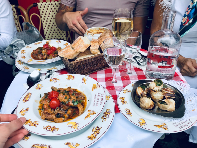 — По соседству с костелом находится известный ресторан La Mère Catherine. Здесь я методично попробовал всё, чем славится Франция: луковый суп, улитки по-бургундски, лягушачьи лапки. На человека вышло около 30 евро.