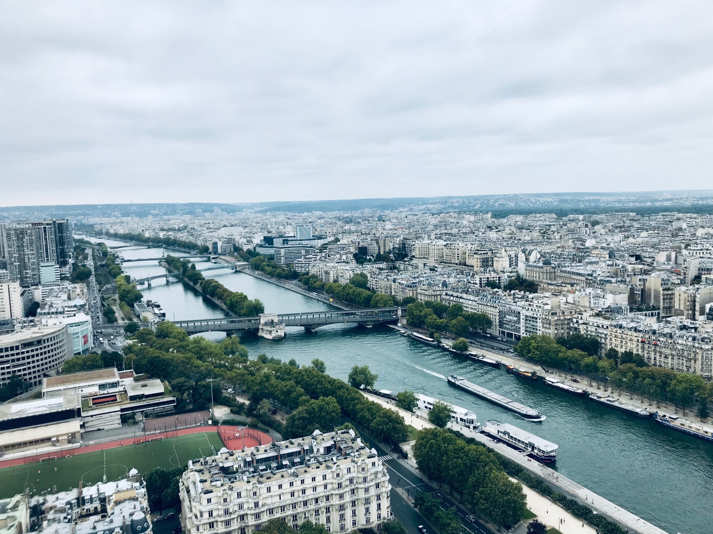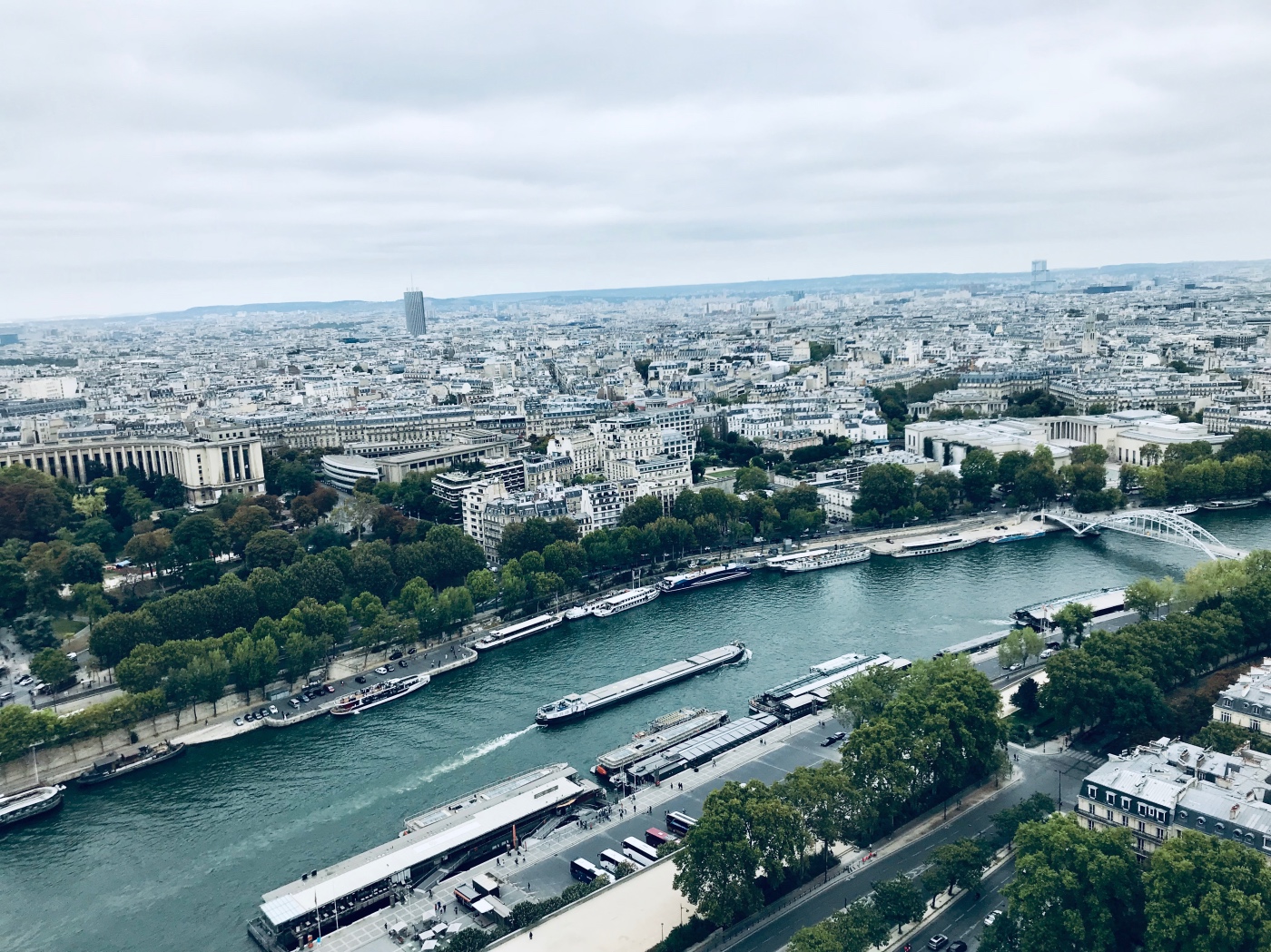 Также смутили местные «революции». На утро третьего дня запланировал посещение Эйфелевой башни. Однако из-за забастовки полностью перекрыли нужную ветку метро. Добрался на шеринговом электросамокате. С башни открываются вид на вытоптанные Елисейские поля, которые частично ограждены, чтобы успела вырасти трава. Наверху можно зайти в кафе.