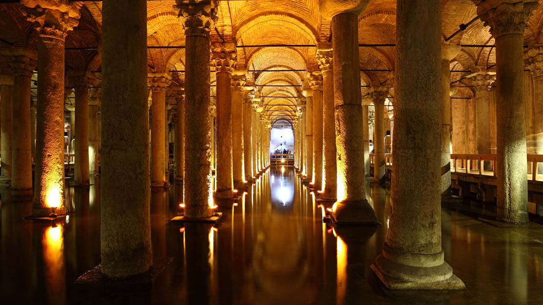 Стамбул — город подземный. Его центр закопан и здания уходят вниз на 4-5 метров. Цистерна Базилика в Стамбуле, пожалуй, самая загадочная и таинственная достопримечательность в старинном городе на Босфоре. Она входит в топ самых посещаемых мест Стамбула. Преодолев путь вниз под землю, длиною в 52 каменные ступени, открывается нечто особенное, зрелище, которое трудно описать. Огромное камерное помещение, прямоугольной формы с 336 колоннами. Приглушенная подсветка и негромкая музыка, создают ощущение загадочности и какой-то таинственности, когда находишься в нем. Цистерна Базилика переводится с турецкого языка, как затонувший дворец, предназначение ее в давние времена было очень важно с бытовой точки зрения, в ней находился стратегический запас питьевой воды, на случай засухи или осады города, тогда еще Константинополя.