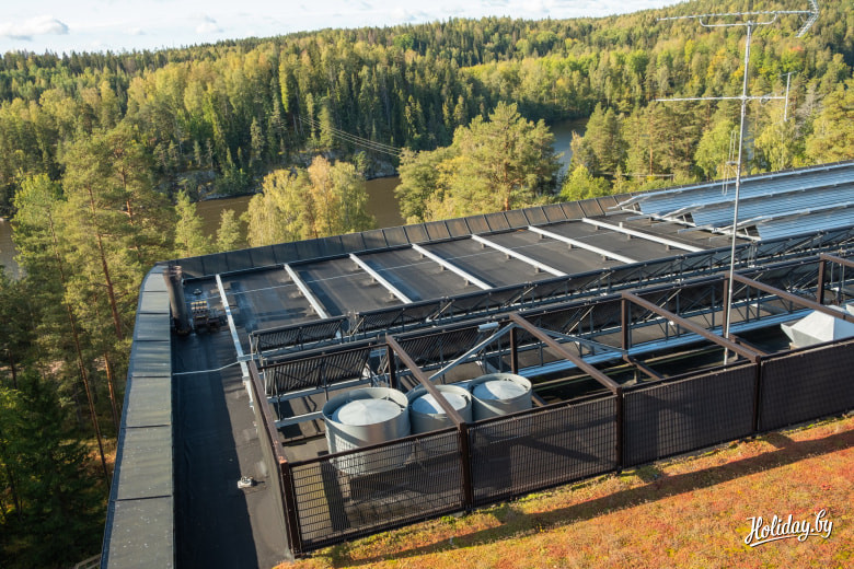 Геотермальное отопление, солнечные коллекторы на крыше, использование естественного тепла скалы в тёплое время года, защита от перегрева здания с юга за счёт застеклённой лоджии, повсеместные датчики движения и учёта числа посетителей – всё это делает центр «Халтиа» на 75% автономным в вопросах отопления помещения и полностью независимым в вопросах кондиционирования и охлаждения. В какой-то момент приходит понимание, что ты хочешь прослушать экскурсию не про уникальную финскую природу, а пожать руку тому человеку, который это придумал и воплотил в жизнь.
