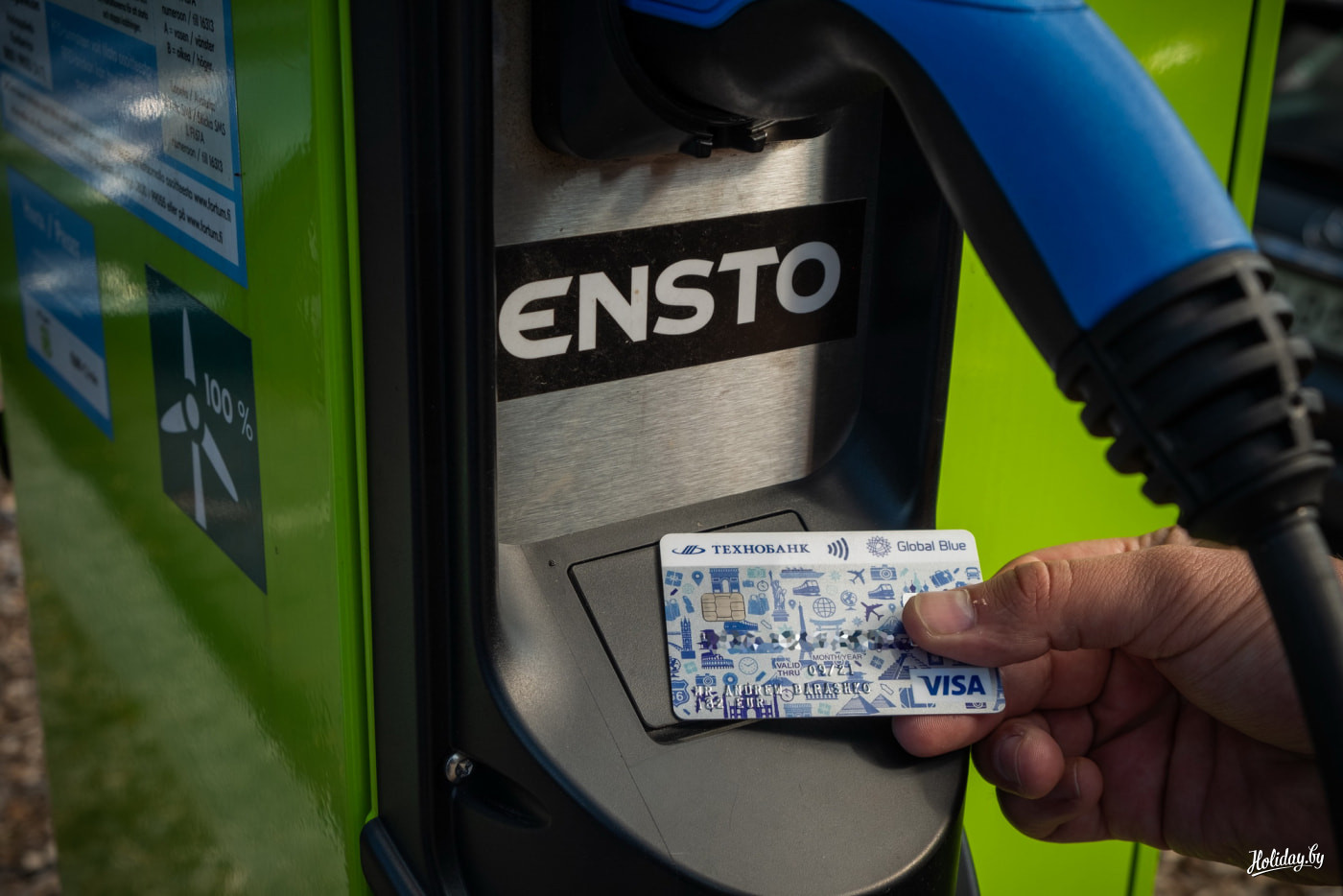 К сожалению, это не быстрая зарядка и полностью зарядить электромобиль за пару часов экскурсии в центр Haltia не получится: разъёмы только Type 2. Оплатить стоимость зарядки можно отправкой SMS на указанный номер. Поэтому заранее стоит побеспокоится о пополнении баланса мобильного телефона, что я и сделал используя мобильный банк карты Global Card от «Технобанка».