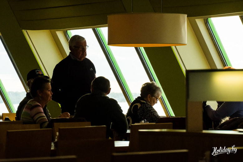 Игровые автоматы, фаст-фуд, кофейня и даже конференц-зал с комнатой переговоров – без занятий на борту парома остаться достаточно трудно. Главное, чтобы не укачивало. Даже в относительный штиль люди, чувствительные к покачиванию огромного судна, могут почувствовать себя не совсем комфортно. Полагаю, что в этом случае лучше забронировать путешествие в отдельной каюте и занять удобное положение на все два часа пути.