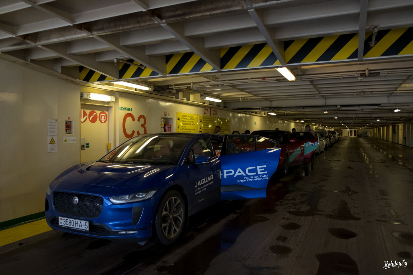 Через Финский залив экспедиция «Jaguar Land Rover покоряет Европу» переправлялась на пароме под названием «Star». Корабль уже, и правда, староват на фоне других судов этой компании на сайте, но не подаёт вида. Всё чисто, аккуратно и есть чем заняться два часа в пути.