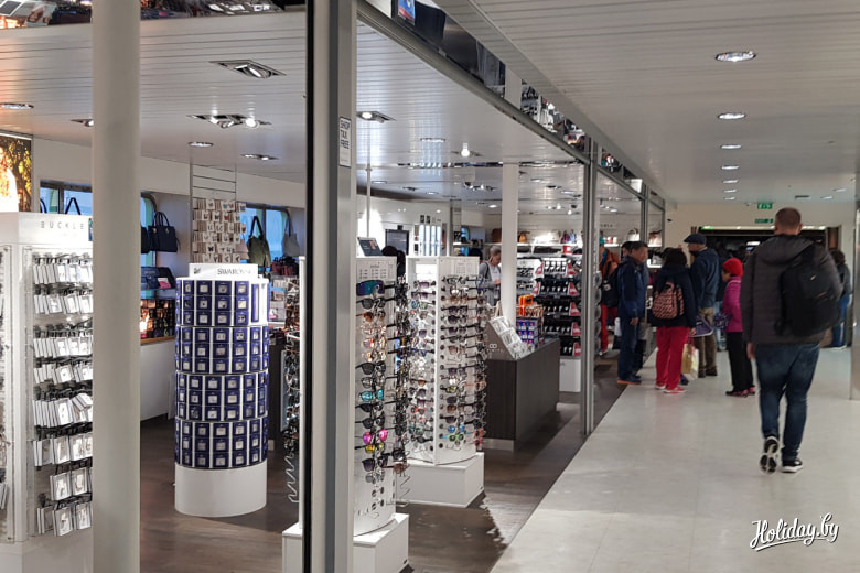 Беспошлинная торговля все два часа безудержно поставляет в руки туристов пакеты с нужными и ненужными вещами. Говорят, тут можно приобрести вещи по ценам ниже, чем на суше, за счёт специального режима налогообложения.