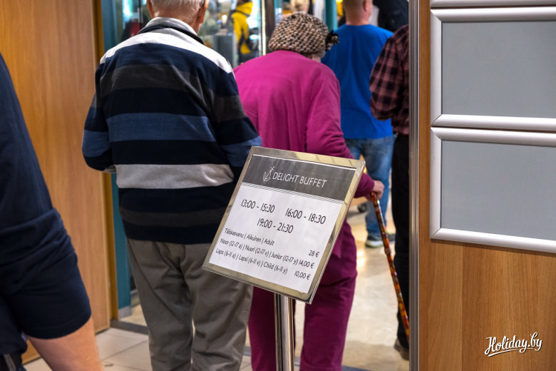 Три занятия на борту круизного парома доставляют удовольствие пассажирам: еда, покупки и изготовление миллиона фотографических карточек на открытых палубах корабля. Мы не исключение, поэтому со старта отправились подкрепиться в Delight Buffet, столик в котором был забронирован предварительно онлайн.