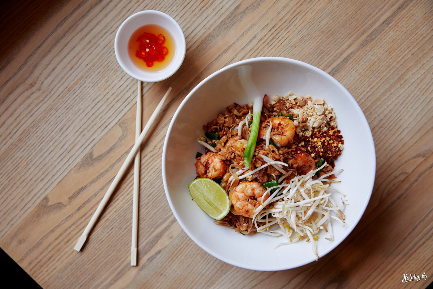 — В зале всегда много людей: мы приучили минчан к острой еде. Очень часто заходят иностранцы. Вообще, Таиланд — это абсолютно другой мир. Там на каждом шагу готовят. Наступает шесть часов вечера, садится солнце — и на улице образовывается настоящий муравейник. На каждом углу тайцы, которые выходят и начинают готовить. При этом нет ни одного одинакового блюда. Достаточно типично покупать еду с собой: и тайцы, и туристы просто наливают супы, соусы в пакетики и несут в отель или домой. В нашем меню самое популярное блюдо — это лапша Пад Тай с тигровыми креветками. Готовим по классическому рецепту: используем рисовую лапшу шириной не более 5 мм. Обжариваем лук, сыр тофу, добавляем рыбный, тамариндовый соус, пальмовый сахар, арахис, зелёный лук.
