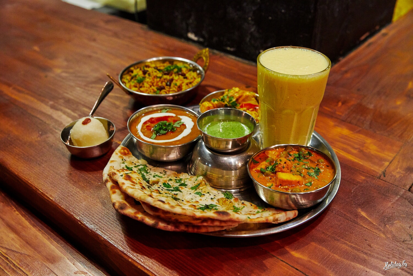 Справочно: сет «Тали» (сабджи, дал, рис, райта, тандури, джелеби, чатник) — 12 BYN