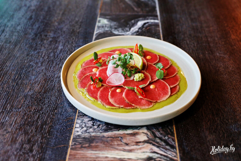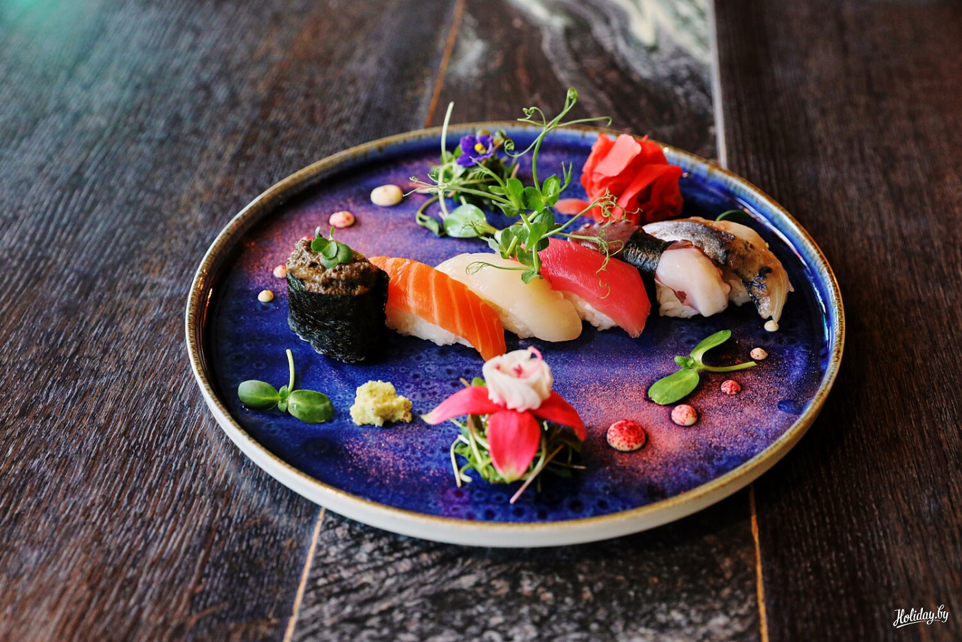Здесь нет поваров-японцев, но на обучение в Токио ездит сам учредитель Александр Дорошенко. Когда-то он начинал проект «Prosushi», но после ушел и открыл классический ресторан с сервисом доставки. Глубоко погружён в восточную философию. Спустя семь лет в бизнесе все равно чувствует восторг от этой культуры. Считает, что по ментальному развитию мы отстаем от японцев лет на 500-600. Как настоящий фанат своего бизнеса использует путешествия в качестве гастрономической прокачки. В чемодане по приезду домой тащит необычную еду и деликатесы. Последний раз привез мозги краба (можно попробовать в ресторане) и настоящий корень васаби, который больше в Минске никто не продает.