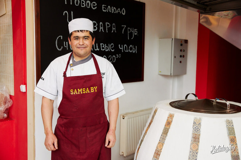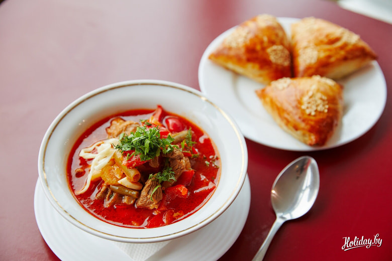 Чтобы попробовать узбекскую кухню, отправляемся в Samsa.by на Дзержинского. Здесь продаётся плов, лагман (среднеазиатское блюдо, представляющее собой что-то среднее между лапшой с подливой и супом), самса с разными начинками. Работает бесплатная доставка по Минску, но и в самом бистро скорость подачи блюд не превышает семи минут.