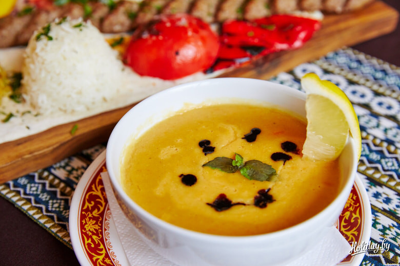 Справочно: салат табуле — 14 BYN, хумус — 9.30 BYN, арабский томатный суп с фасолью — 11.50 BYN