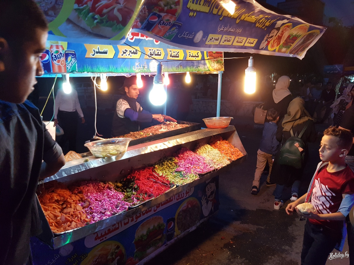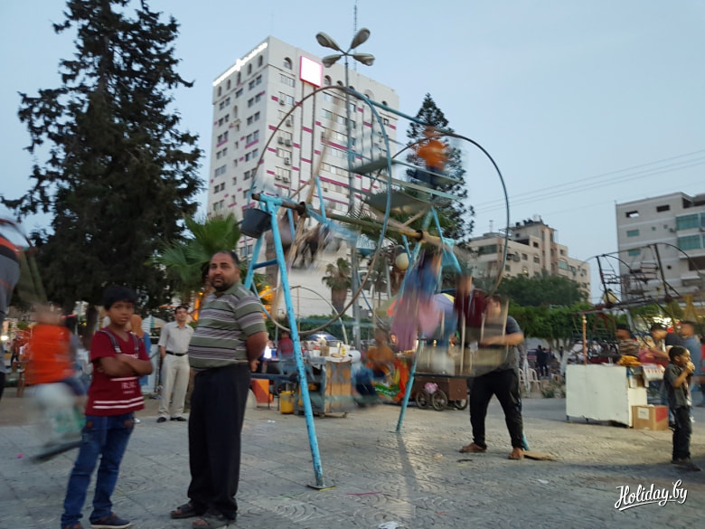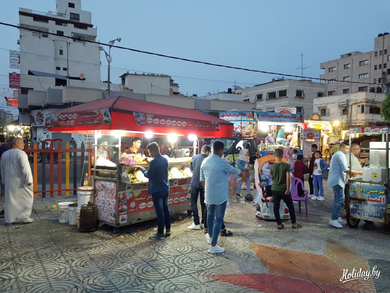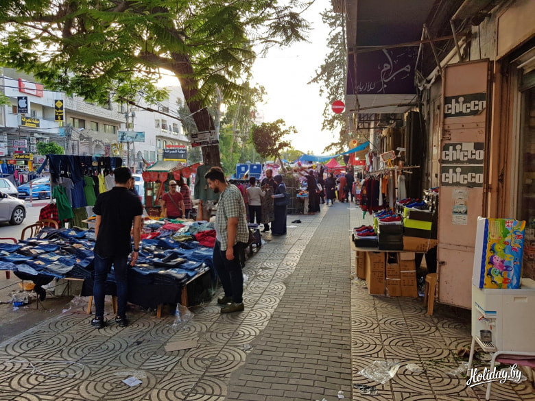 Вдоль парка тянутся две улицы с магазинами, банками, офисами, кафешками. Здесь же находится знаменитый торговый центр Capital Mall – маленький кусочек Европы с бутиками, фудкортом, детской игровой площадкой. На соседних улицах тоже есть много магазинов и всяческих заведений, а атмосфера мало отличается от других палестинских городов вроде Хеврона или Наблуса. Иностранец может смело гулять один, даже на девушку без хиджаба никто не обратит внимания. Вопреки стереотипным представлениям, кражи и мелкая преступность в Газе практически отсутствуют. Разве что какой-нибудь попрошайка может пристать, но в таких случаях ему быстро сделает замечание кто-то из прохожих и он сразу же уйдёт, ибо публичное порицание тут считается делом постыдным.