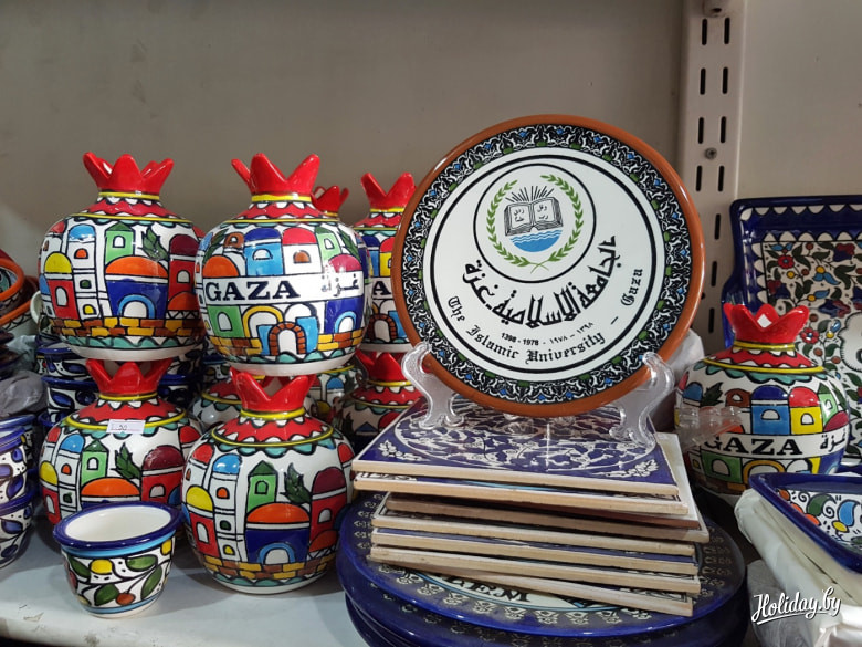 В Рималь можно найти несколько сувенирных магазинов. Ассортимент товаров неплохой: от традиционной палестинской одежды с ручной вышивкой до магнитов, тарелок, чашек, ваз и шкатулок с народными орнаментами. Есть даже турецкие майки с надписью «Smile, you are in Gaza» и нагрудные значки ХАМАСа, ФАТХа, Исламского джихада и прочих палестинских группировок (в Иерусалиме такие точно не купишь).